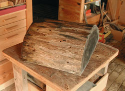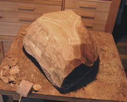bench and at this stage I'm taking off potato-chip-sized pieces.