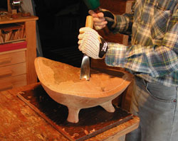 old goose-neck scraper to remove all the gouge marks and that the bowl