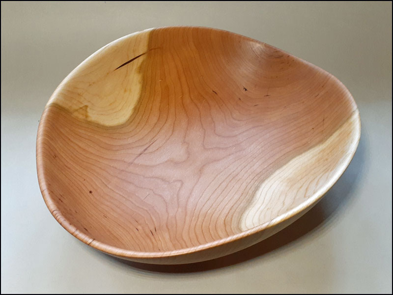 I began this bowl on December 1st, 2024 by sawing down a large black cherry tree that was in the way of an even larger, diseased white birch that I plan on taking down next spring. The cherry was about 18" in diameter at the trunk; I cut this piece at a point about 25 feet from the trunk. It was approximately 12" in diameter and 18" long and when split in half weighed just under 35 pounds. I've documented the carving process below.