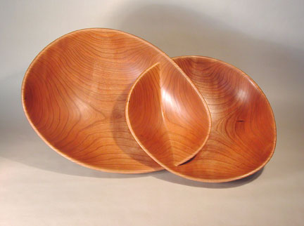 "Duet" Carved Black Cherry Bowl by Steve Schmeck 5-1/2"h x 19"w x 10-1/2"d