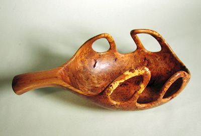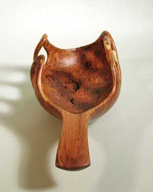 Carved Black Cherry Burl Bowl with handle   by Steve Schmeck