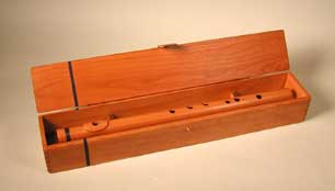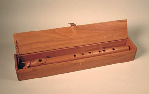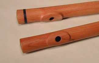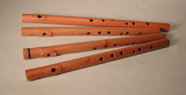 These individually handcrafted wooden flutes are about 16 inches long, and