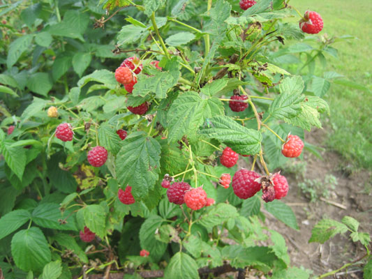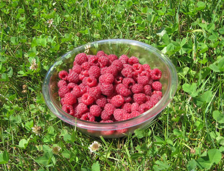 in Michigan's Upper Peninsula Raspberries abound on our homestead. Wild ones give their crops every year without fail, with no fuss, no care and no concern about who eats their small red fruits. And we've had tame ones growing in our garden since the earliest years, sharing them with the birds and small furred creatures yet having plenty for our use. |