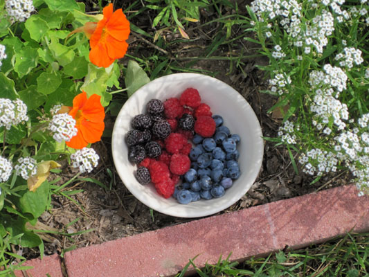 Raspberries - 2016-2018Having written and published the Berries book in 2016 with a good long chapter on raspberries I haven’t had much to add here on the website. I continue to mulch, the plants continue to grow and produce, each year brings its own diversity, and we eat raspberries. Except for 2017... SWD - Spotted Wing Drosophila - an East Asian vinegar or fruit fly that has made quite an infamous name for itself this decade in the U.S. fruit world. She particularly likes the soft fruits and unlike the fruit flies we’re most familiar with she likes her fruit fresh, not for eating but as a nursery for her eggs. Laying her eggs inside the nicely ripe berries they soon become larva and quite unpalatable to us, and unsaleable for farmers. There is quite a lot of panic in the horticultural world about this. I noticed the fly, or rather the results of the larva in the fruit, in 2016 in the wild blackberries. We have quite a few on our property which are mostly just grazed as one walks by, but sometimes I pick enough for a batch of wine. But that year every berry I picked was mushy. It is quite obvious when a berry is infested. I figured it was some disease. Our wild blackberries aren’t always real healthy; it varies year to year. Disappointing, but since I couldn’t do anything about it I simply passed on the blackberries that year. I didn’t notice anything similar in my tame berries. Then 2017 season arrived and there was no doubt the SWD had found my raspberries. And to a lesser extent the blueberries (not nearly as bad, thankfully). By then I’d learned a bit about this little creature. Reading up on recommendations, looking to find something that would fit my way of gardening (no chemicals), I finally decided on a mild strategy that I often use on other crops with disease or insect problems - pick it. I put a bucket of water by the berries. All summer, every day or two, I picked EVERY raspberry. The small number that felt firm and good were eaten or went to make raspberry vinegar. If it felt at all mushy it went into the bucket of water. Most of them were the latter. It wasn’t the most fun harvest I’ve done but I felt it would work. I let the bucket sit for several days then emptied it into the compost pile - again and again and again, until the harvest was over. This was one year I truly welcomed any and all birds to help themselves to all the raspberries they could eat. I was particularly overjoyed when one day late summer I had what I assume was a fledged family or two of hummingbirds. I’d never seen anything like it (I usually only see two adults) - maybe eight or ten (they were really hard to count!) mostly young hummingbirds having a thoroughly fun and crazy time flying around and through the garden, chasing each other and who knows what else, buzzing me, and hopefully eating their fill of fruit flies.