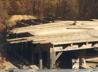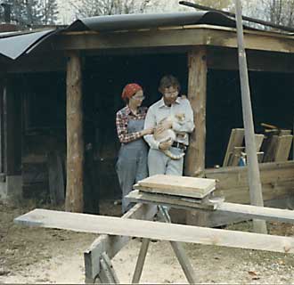The first dirt was dug that spring. We lived in head nets. A visiting friend swore to come back only in winter (which he did). It was hot and sunny. What a year. We worked hard and were as fit as we'd ever been. It was a great start. We planned to be in the house by fall. We did move into the house in the fall -- of 1985. But the foundation was completed in that first summer of 1978. Most of the building was done in 1984 and 1985. We did a bit of work in between; took time off to earn money; did more work; built our homestead. What an adventure it was. It still is. Below is a photo odyssey of the building of our house.