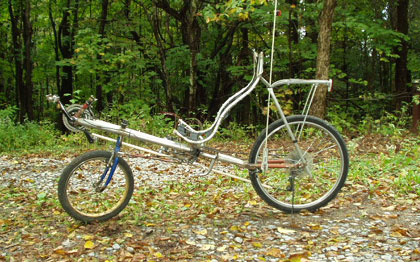 "On the trike, one of the front wheels was made from a 20 inch