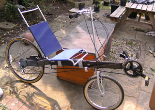 Dan Brown's Homebuilt Short-Wheelbase Recumbent - 4/2009Dan, who lives in the U.K. just finished his recumbent bike project. He used parts from various old bicycles, and the main frame is a rectangular steel tube. He says "... handling isn't amazing, but I'm quite pleased seeing as its a first build, and I clearly don't have loads of experience!" Here are a few of the photos Dan sent: