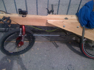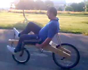Nickolas has just completed his first homebuilt recumbent and sent along some photos. He says that the bike is still a 'work in progress' with some seat positioning stuff to work out but that "it does ride very well". I love seeing this kind of bike being built - and ridden! Check out his video http://www.youtube.com/watch?v=RDlKuoDDaVA of the bike in action. Also, check this one out!! http://www.youtube.com/watch?v=kx8ufH4yerg&feature=channel
