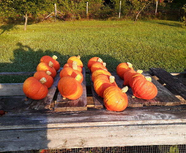 With the rather cool, damp growing season, with little sunshine, the heat loving crops were a bit reluctant to mature a crop. I didn't expect much and instead hoped someone will have managed to grow some winter squash that we could purchase. In late August tomatoes, peppers and squash did perk up, the ever-hopeful squash even put out a batch of new blossoms! I knew I could ripen tomatoes inside but didn't expect much from the immature squash that the vigorous plants had managed to grow. But my own-cross-selected orange squash wasn't so ready to give up - they made good use of the now abundant sunshine and managed to ripen a decent crop. Thankfully the fall frosts and freezes held off. What an amazing year! September 22, 2025 - Happy Equinox! With wishes for a happy balanced life. We have always appreciated, loved, and enjoyed the beautiful skies we are fortunate to have in the Upper Midwest, but we have never celebrated it more than this year. We were blessed with beautiful weather back in mid May during the week we pulled our old well pipe and installed the new electric pump. We noticed and appreciated that every long day of that week. Then we got a spell of wet weather; not at all unusual for spring, but it continued ... and continued ... and, well, when it finally backed off a bit in July we were happy to simply have some days of no precipitation! And so the summer went on, work outside was in fits and starts, and anything green grew like crazy (this was a salad lovers year!). Since we also had constant haze from the many wildfires in addition to the high humidity fog we literally didn't see blue sky again until today - August 14! And what a beautiful sight it was. The song "Blue Skies" sure took on a new special meaning.