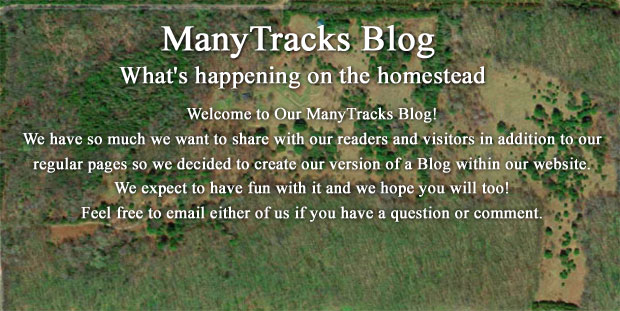 Welcome to our informal "blog", where we share miscellaneous happenings on and about the homestead and our lives. Check out the individual pages via the menu above for more info on the various topics. We enjoy hearing from our readers. You can email me (Sue, the main poster) by clicking on the Comment button below.