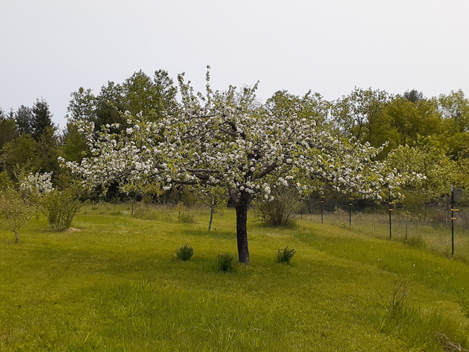 put the clamps back on and let it all dry for another day. Just a week ago this Chickadee was checking out the first buds in the orchard thinking of blooming. Now, a week later, this tree is lighting up the entire area with as many full blossoms as it can possible fit on the tree! Some trees are like that. Welcome to June! May 28, 2025 - New Song / New Video