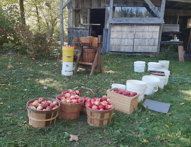September & October 2025 - Cider Time! The squash wasn't the only crop to surprise me, we ended up with a pretty good apple harvest this year. Some trees chose to wait for a better year but our root cellar managed to fill nicely with Dudleys early on, and Black Oxfords and Haralsons later, plus many small harvests from other trees. This meant, for us, enough apples to make cider! Not only fun, but delicious. We also have plenty for sauce and fresh eating, plus some to share. Though mostly neglected during the growing season this year the fruit trees went ahead doing what they do best - making fruit! Not only apples, but pears and plums! What an appreciated abundance.