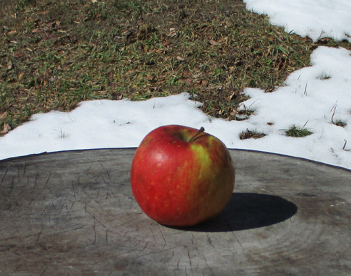 maybe due to record hot summer, apples not March 15 (2021) - We celebrated a "busy" five days* by enjoying the final apple of the season, fresh from the homestead (root cellar), a Haralson, in pretty good shape, especially considering its age, and very good eating. Won't be another until fall. Store apples just can't compare. * 13-new moon; 14-time change; 15-ides of March; 16-our real Equinox and St. Urho's Day; 17-St Patrick's Day. Whew. Then a couple days off til Saturday, 20th-official Equinox day. 2019 - Nice Fruit!