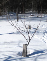 2024 - Decided to give up on Waneta-South Dakota. No fruit (again) on Waneta and what fruit SD had was small and PC bitten. Cut the struggling tree down early September. 2023 - Vigorous, pruning to get some kind of reasonable shape (~ 1/4 of Waneta plum). Full of blossoms, and later fruit! Lot of aphid issues, plus some PC, looked pretty awful, didn't think there was much good fruit. But it set quite a lot in spite of mid 20's freeze late May when in full bloom. 9/22 started dropping ripe plums (latest of all the plums), smallish but good flavor. A few days later freeze forecast so picked rest though weren't all ripe. But they ripened in storage nicely. Used in sauce with apples. 2022 - Continues vigorous, did some pruning to bring down size (with Waneta). Some blossoms half open when 5/23-24 freeze (26 deg). Other plums full bloom. Set a couple of fruit. Didn't get very big or mature, insect damaged. 2021 - Hot, dry spring. 5/18-21 all plums, including South Dakota in latter group (and Waneta in early group, in full bloom. 5/27 four nights freezes 24-30 deg. No fruit. Good summer growth. 2020 - Some blossoms opening 5/29. No fruit. 2019 - Several blossoms first of June. 2018 - Vigorous growth, summer prune some, good graft union. Tried direct grafts nearby, didn't take.